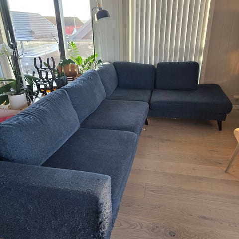 Sofaen kan deles i 3 deler når den skal flyttes.