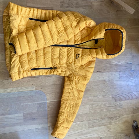 Jakken er noe mer slitt på armen, se bilde