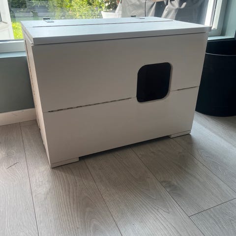 Fødekasse kjøpt i Danmark, brukt til tre kull Russian Blue. Vurderes solgt.