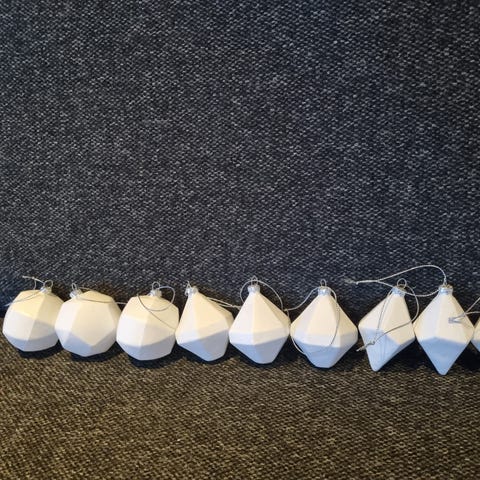 Juletrekuler med 3 ulike topp-dekor. 2 varianter på selve kulene.