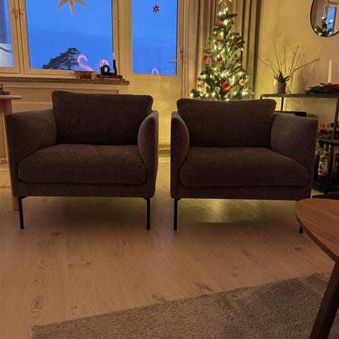 Sofaen er god å sitte i, ikke nedsittet, men brukt.