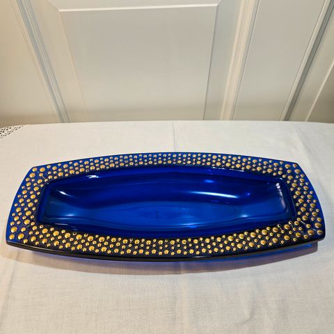 Vintage koboltblått fat lengde 29cm bredde 20cm. Kjøper betaler eventuell frakt