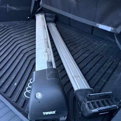 Til Mitsubishi outlander 2013 - 2021. Sorte komplett takstativ 2 bøyler, kun brukt to ganger i fjor vinter. nypris ca 5000.-