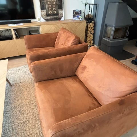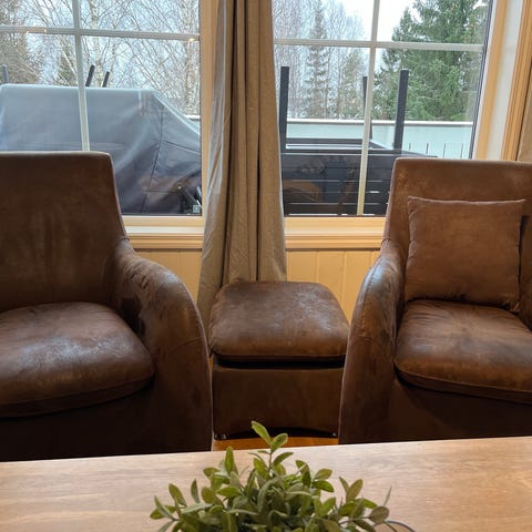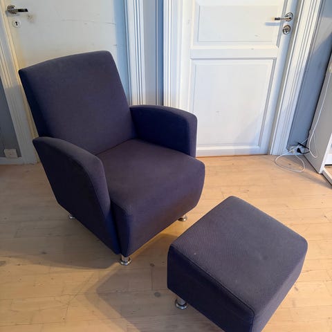 Flotte svarte lenestoler med puff/ fotstøtte som kan brukes til oppbevaring.