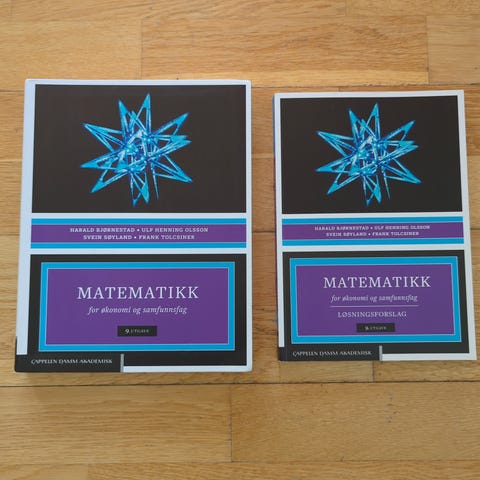Matematikk for Økonomi og Samfunnsfag (9.utgave), skrevet av Harald Bjørnestad, Ulf Henning Olsson, Svein Søyland, Frank Tolcsiner.
