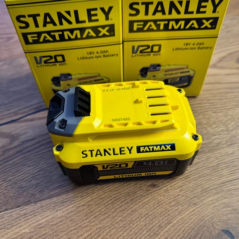 Nytt uåpnet Stanley Fatmax 18V 4.0Ah batteri i eske.