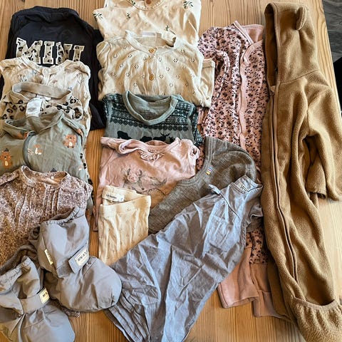 Dressen passer vanligvis for babyer rundt 7-9 mnd og tøflene fra ca 9mnd+