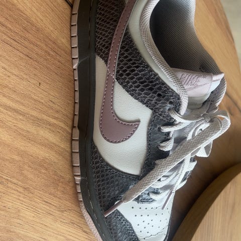 Nike Sneakers joggesko i størrelse 38. Skoene har en kombinasjon av lyse og støvete rosa farger med hvite detaljer. Materialet er ikke spesifisert, men skoene har tradisjonell snøring og en gummisåle med Nike-logo. Passer til daglig bruk og fritidsaktiviteter.