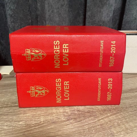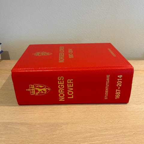 Norges Lover Studentutgave bok i rød farge. Inneholder lover fra 1687 til 2018. Boken er utstyrt med faner for enkel navigasjon mellom seksjoner.