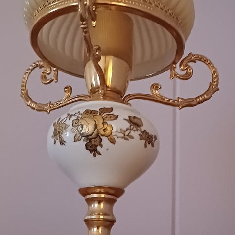 Lampet laget i retrostil med mørk brunog okergul farge. Kler godt en varm lyspære.