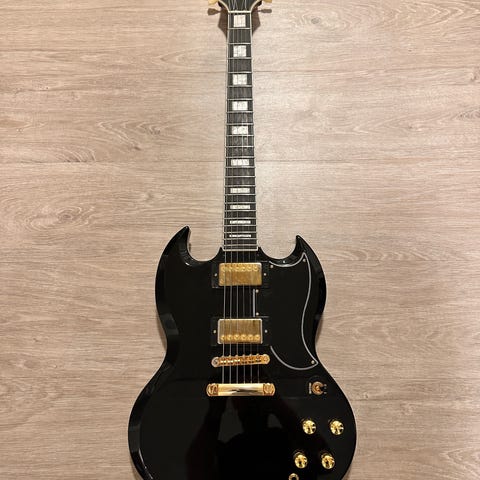 Lufter min Epiphone sg til salgs fordi jeg bruker den ikke så mye lengre og er ute etter og oppgradere, gitaren er godt brukt men i god stand, lyd bryteren må muligens loddes fordi den detter ut av og til
