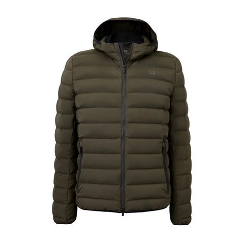 Ubr Jakke i dun, størrelse L, i fargen grønn. Jakken er designet for menn og egner seg til utendørs bruk. Den har en hette og er laget av dunmateriale som gir isolasjon og varme.