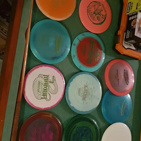 Selger discgolf-pakke bestående av 5 disker + 1 kurv 🥏