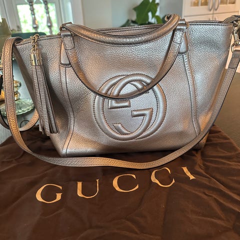 Limited edition Gucci dameveske laget i lær. Vesken har et mønstret design med fargerike detaljer og gullfargede metallspenner. Innvendig har en lomme til oppbevaring. Vesken kan bæres i hånd eller med skulderrem. Ganske få bruksspor.