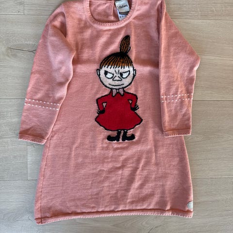 Lillelam unisex genser i størrelse 110, laget av merinoull i grå farge med Lille My fra Mummitrollet.