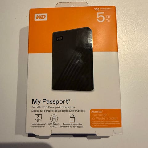 Selger en pent og lite brukt Western Digital My Book 4TB. Dette er en solid og stillegående ekstern harddisk som passer perfekt til sikkerhetskopiering, lagring av bilder/videoer eller som ekstra lagringsplass til PC og Mac.