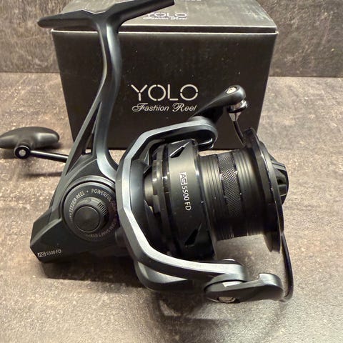Diverse fiskeutstyr i original emballasje uåpnede pakker.
