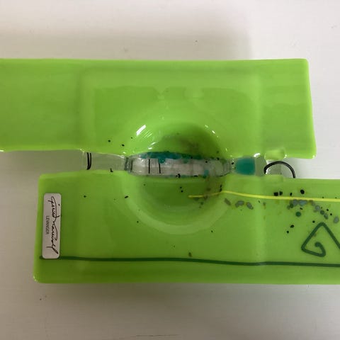 Flott telysestake i kunstglass av Åshild Karevoll, Levanger.
