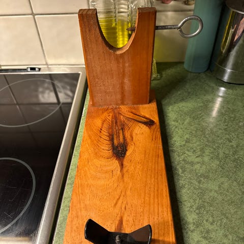 Skinkestativ, også kjent som en jamonera. Dette stativet er fra Spania og brukes til å holde et skinkelår (som jamón serrano eller jamón ibérico) sikkert mens det skjæres i tynne skiver.