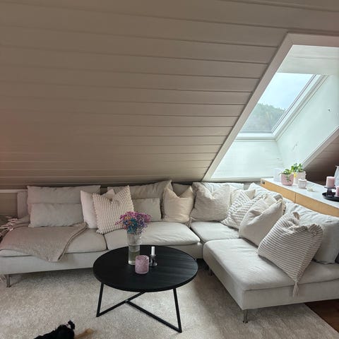 Meget godt og fin sofa i en nøytral og anvendelig farge. Romslig sjeselong og komfortable puter.