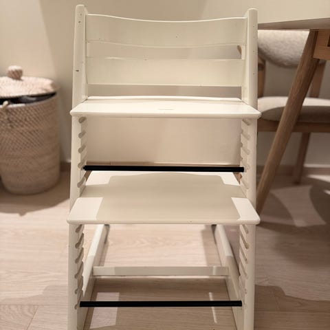 Selger en svært pent og lite brukt Stokke tripp trapp stol i fargen sort med tippesikring. Stolen er velholdt og så god som ny, kan kkke se til hakk, riper eller slitasje. Men om det er oversett 1-2 små merker så er stolen brukt. Men ingen eller mangler. Stolen er kompatibel med babyset og newborseat.