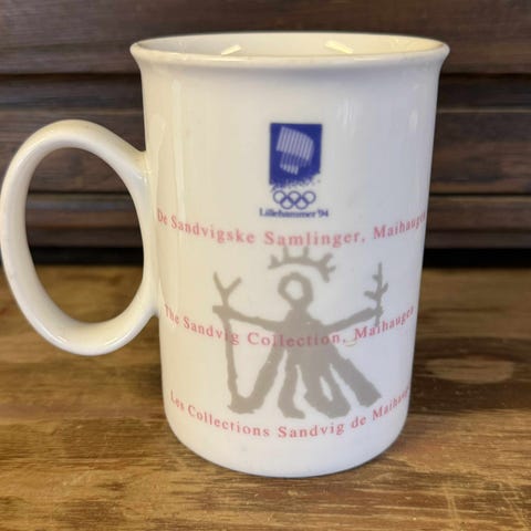 Originale krus fra Lillehammer-OL 1994, produsert av Porsgrund Porselen. Blått/hvitt design med OL-logo og motiv. Normale bruksspor, hel og pen stand uten skår eller sprekker.