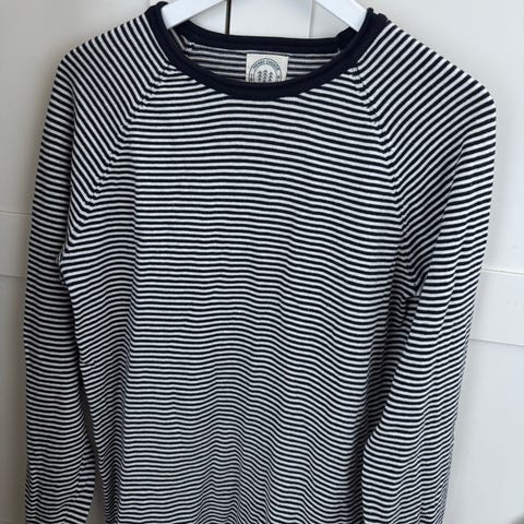 Grønn Henry Choice genser med dekor i beige, glidelås i halsen. Str S. 100 % bomull.