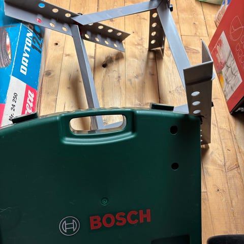 bosch verktøybenk for barn med litt div verktøy, se bilde.