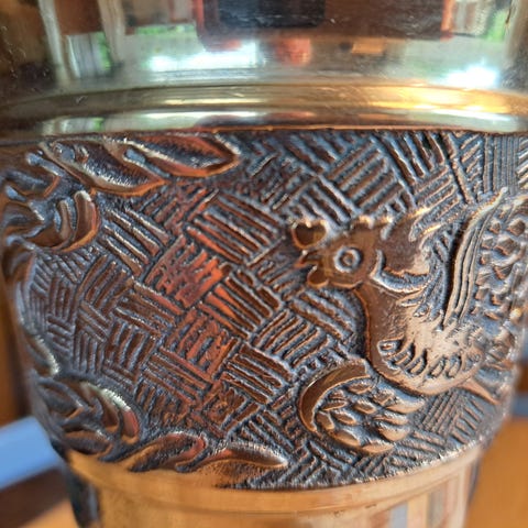 Søkeord: messing vintage retro lysestake lysestaker artdeco klassisk interiør dekor dekorasjon bolig styling antikk stil søyle tung massiv metall gull farget vindu peis konsoll stue spisestue lys design midcentury nostalgi eksport hongkong samler pynt