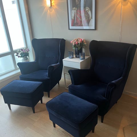 Gode ørelappstoler fra IKEA selges samlet pga flytt. De blir litt for store i ny stue.