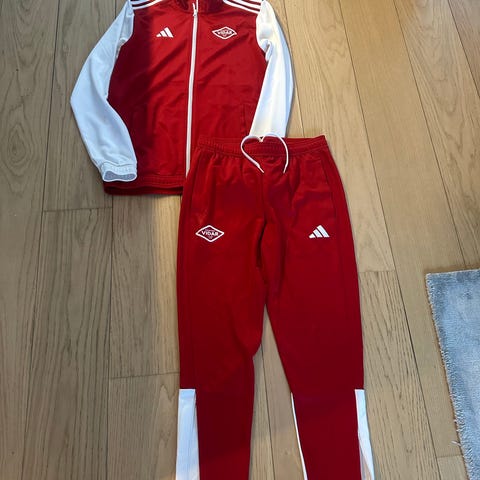 Nike Paris Saint-Germain treningsdress for barn i størrelse XL (158-170 cm) og bukse S. Jakken har fargene rød, hvit og marineblå med hette og glidelås foran. Buksen er marineblå med detaljer i rødt og hvitt, og tekst 'PARIS' på benet.