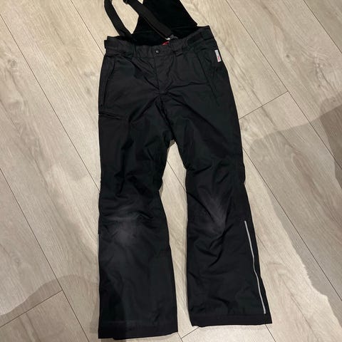 Vinterbukse fra Reimatec str 152 med seler som kan tas av. Brukt kanskje en gang. Fargen er turkis/lyse blå