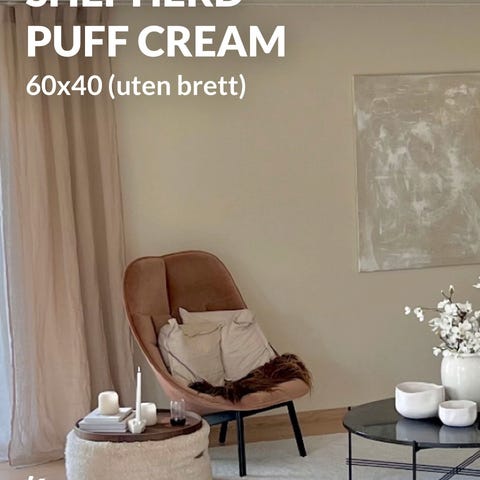 Puff fra Shepherd, grå farge i myk, vevd ull. Perfekt som ekstra sitteplass, fotskammel eller bare et stilrent element. Ny pris kr 2500.