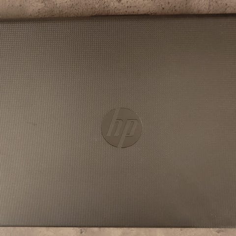 HP Laptop med IMAX-funksjon. Bærbar datamaskin med tastatur og skjerm i metallisk finish. Inkluderer standard porter og funksjoner for daglig bruk.