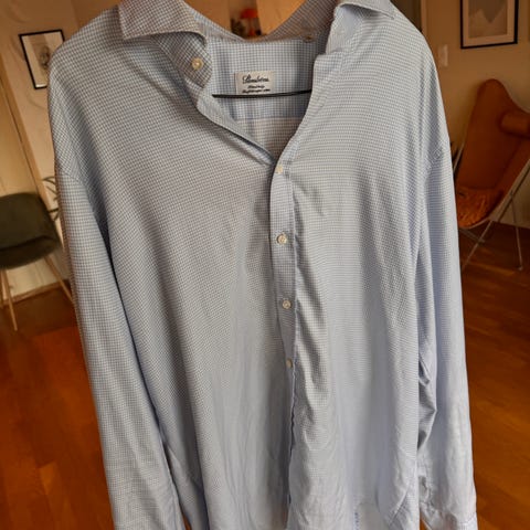 Selger lite brukt skjorte fra kvalitetsmerket Stenströms. Den har ikke knapper i ermene og er laget for å bruke med mansjettknapper.