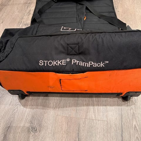 Selger en Stokke PramPack transportbag til barnevogn. Veldig praktisk ved flyreise – beskytter barnevognen godt under transport.