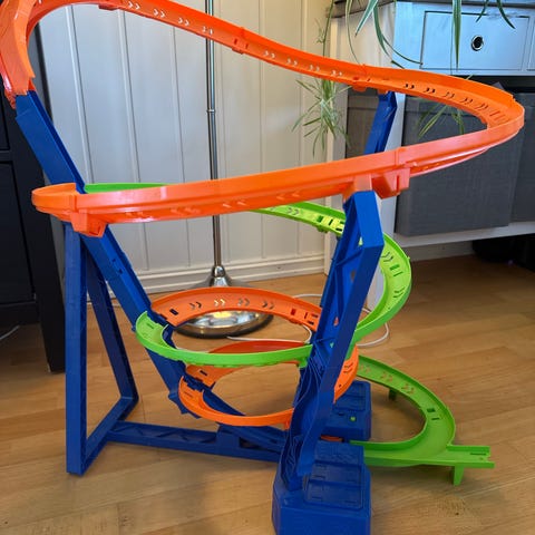 Hot wheels action spiral bilbane. Nesten ikke brukt. Kompatibel med alle hot wheels-baner. Nypris ca 900kr. Selges for 400 mot henting.