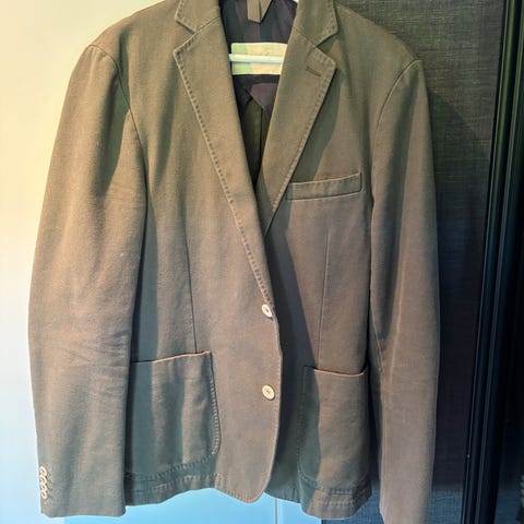 Det er en Oscar Jacobson, Storvik Coat i str 46 (S) Den er laget av en ull og kashmir blanding så den er god og varm. Jeg selger denne frakken siden den ikke passer meg lenger. Originalpris 5999kr