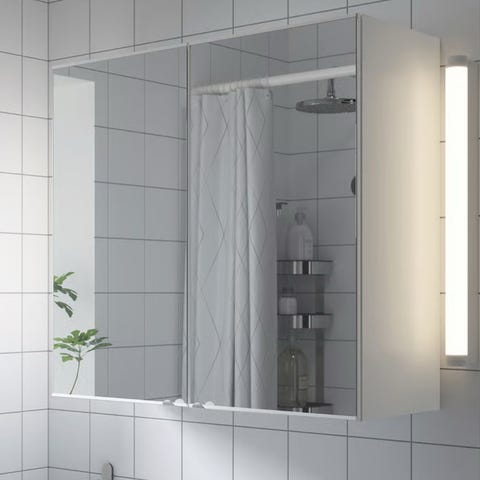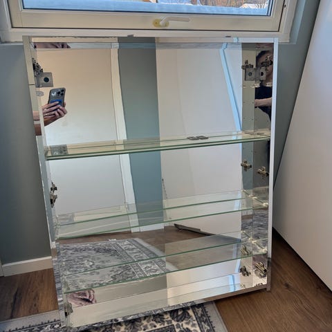 Speilskap fra IKEA m/to dører. Hvit med fronter i speil. Størrelse 60x65cm. Glasshyller innvendig.