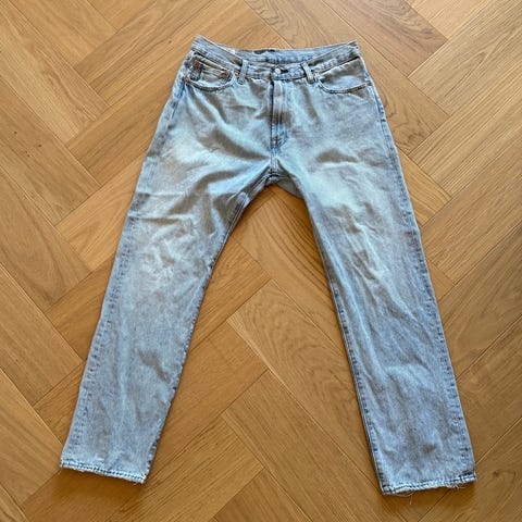 Levi's denim jeans i blå farge, størrelse W33 og M for menn. Laget av denim materiale, egnet som hverdagsklær.
