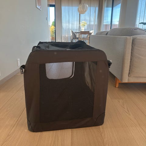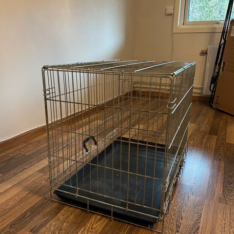 Hundebur i metall med plastbunn. Buret er laget av metallgitter med en avtakbar plastbunn som gjør rengjøring enklere. Egnet for bruk til oppbevaring eller transport av hunder. Er veldig stort og passer til medium eller store hunder. Dør både i enden og på siden.