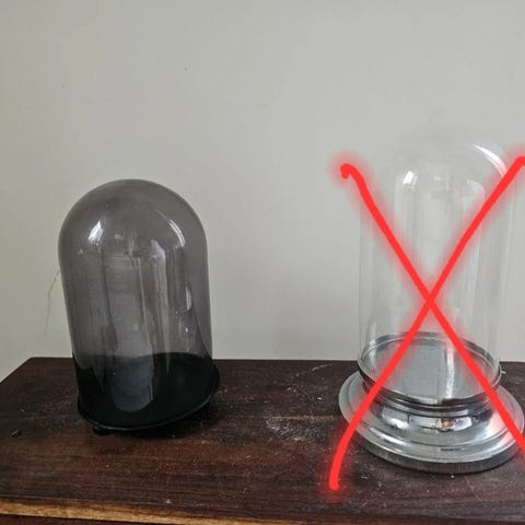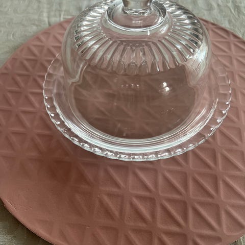 Dette er en oste- eller kakeklokke i glass. Den skaper det perfekte klimaet for oppbevaring av ost, og holder den frisk. Den er laget av klart glass og har en kuppelformet design med et håndtak på toppen. Glassklokker brukes også i interiørdesign for å beskytte dekorative gjenstander mot støv og skape et stilig utstillingsvindu.