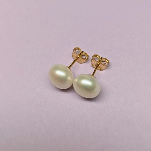 14K gullfyllt eller 925 sterling silver. Ekte "triple A" white ferskvann perle.