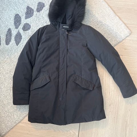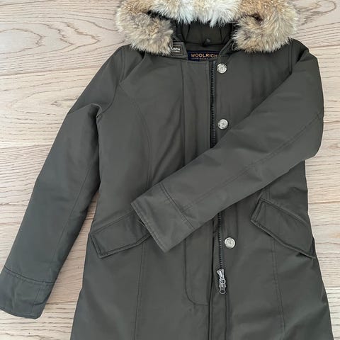 Woolrich Arctic Parkas mørk blå , som passer str. M. Jakken har hette med pelskrage, og lukkes med glidelås og knapper. Kjøpt på Høyer. Klassisk og tidløs modell. Avtagbar hette - lett innsvingt fasong, fremstår som ny