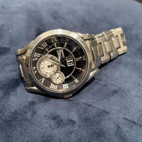 Featuring a 44 mm diameter, this watch makes a powerful statement on the wrist. It operates with a quartz movement driven by the Ronda 6003D caliber, and its robust 20 ATM water resistance makes it suitable for diving. The Swiss Made label assures high-quality craftsmanship. The watch also includes Super-LumiNova lume for visibility in low-light conditions and comes with an extra strap for versatility. The fold-over clasp ensures a secure fit, while the sapphire crystal protects the dial, all encased in durable 316L surgical steel.