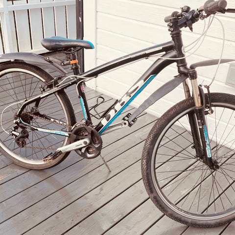DBS -Trek 5 terrengsykkel for barn i blå farge. Sykkelen har terrengdekk, girsystem og håndbrems. Egnet for bruk på ulike underlag og til utendørs sykling for barn.