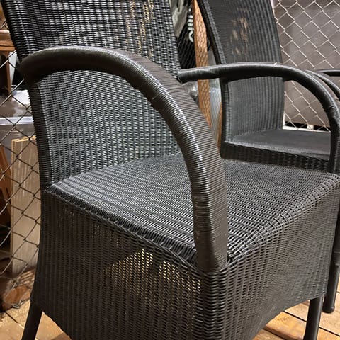 Utemøbel stol i hvit metall med tauverk