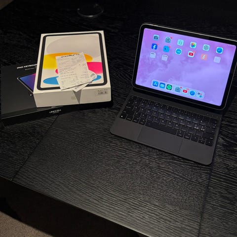 iPaden og tastaturet er pent brukt og fremstår som nye, uten synlige bruksmerker.