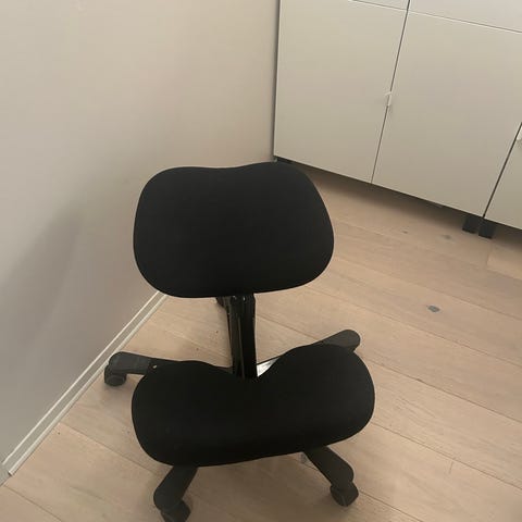 Balanse-stolen passer for deg som sitter lenge ved skrivebordet. Den er enkel å bruke, og har hjul.