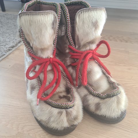 Skoene er kjøpt for noen år siden, men lite brukt p.g.a feil størrelse til meg. Ikke noen synlige slitasjemerker. Om du lurer på noe, ta kontakt!